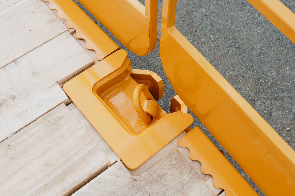 Using a 4-link chain system, each bridge is easily moved and placed with an excavator or crane.